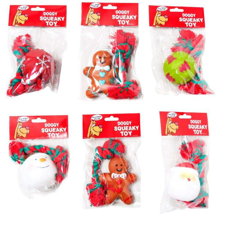 Dogs love nothing more than playing with squeaky toys. These Christmas themed dog toys are designed with squeezable material and perfect for giving pet gifts.